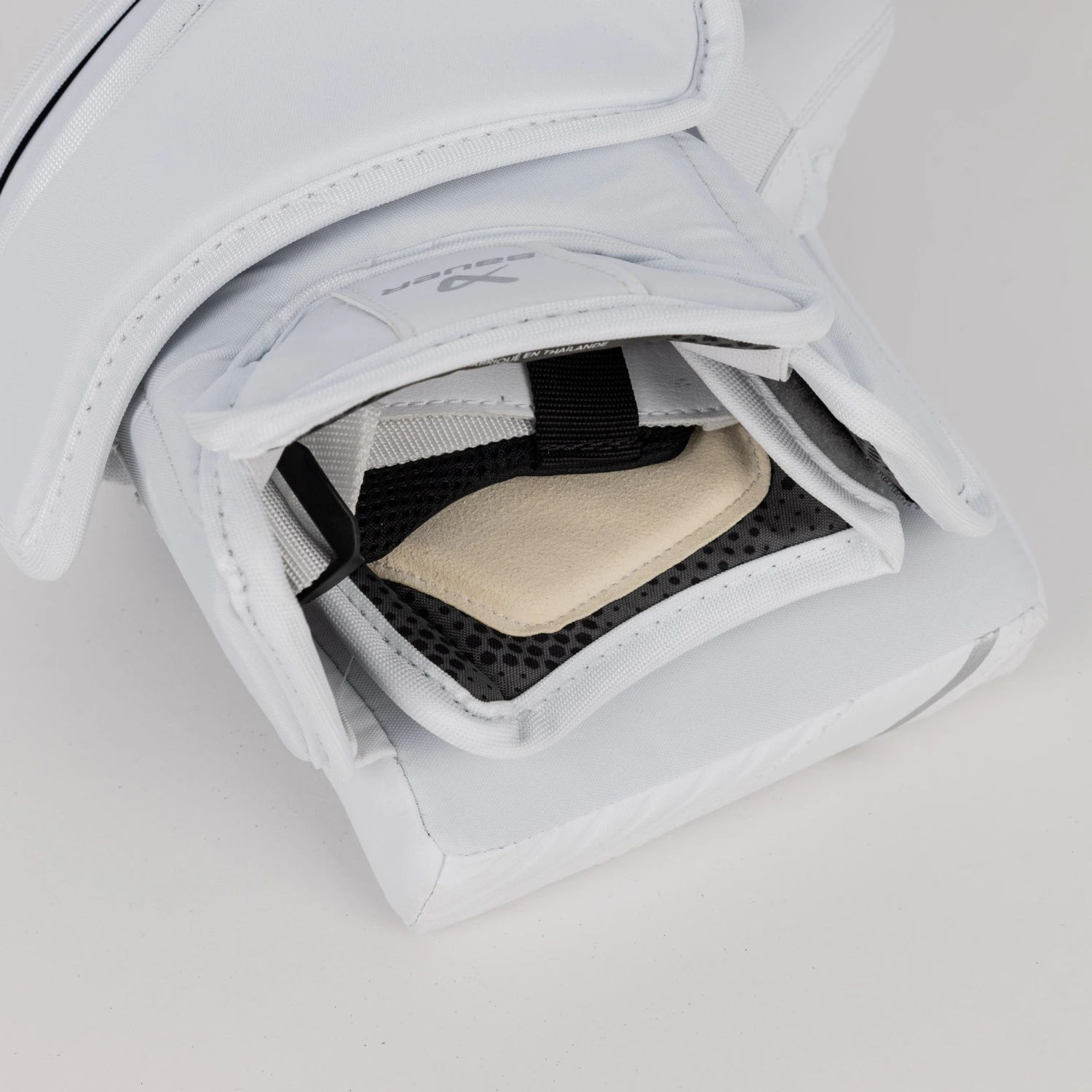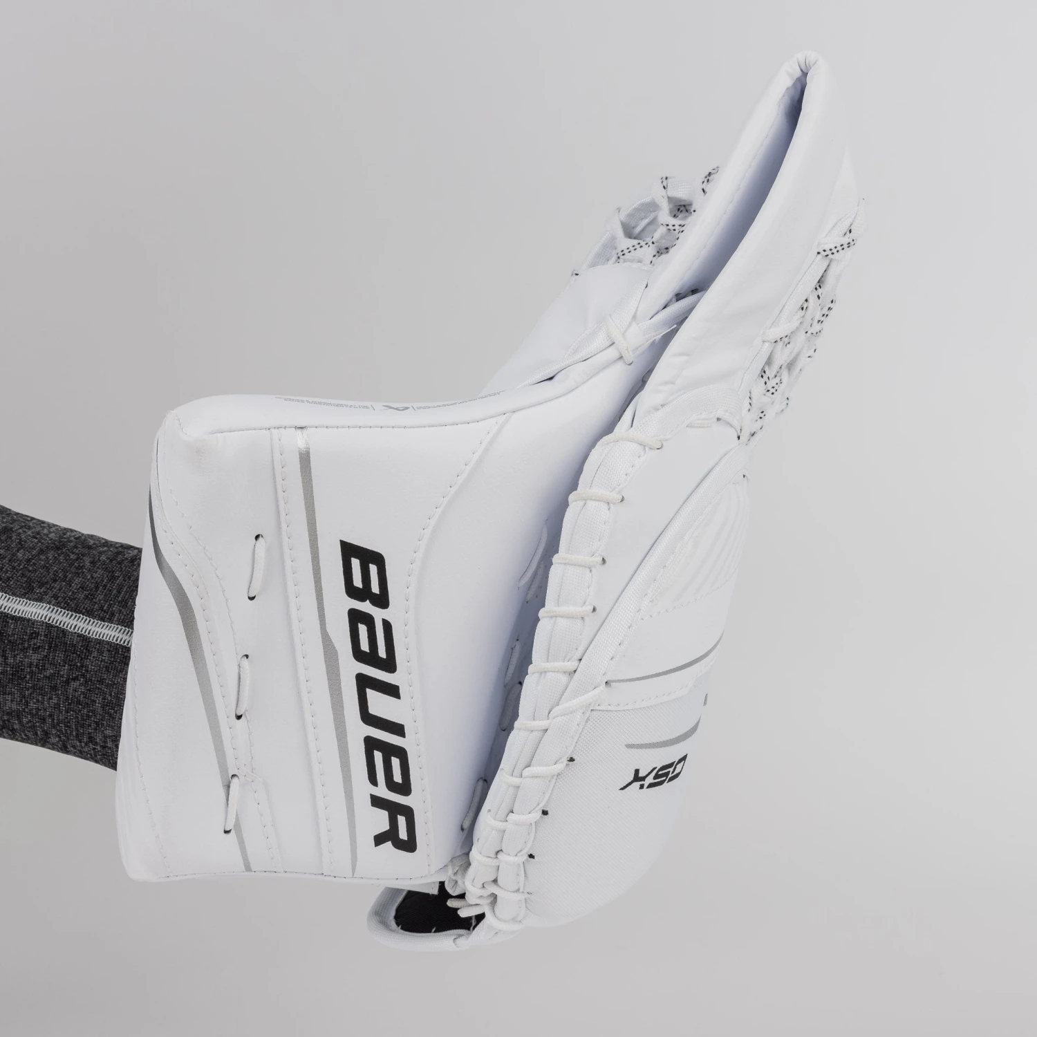 The 2023 GSX Catcher line features rebound control foam, an ROM strap with adjustable lower wrist control, overlapping pinky finger stall with a HyperSense liner for added comfort, and a Max-Depth T Trap with a skate lace pocket.