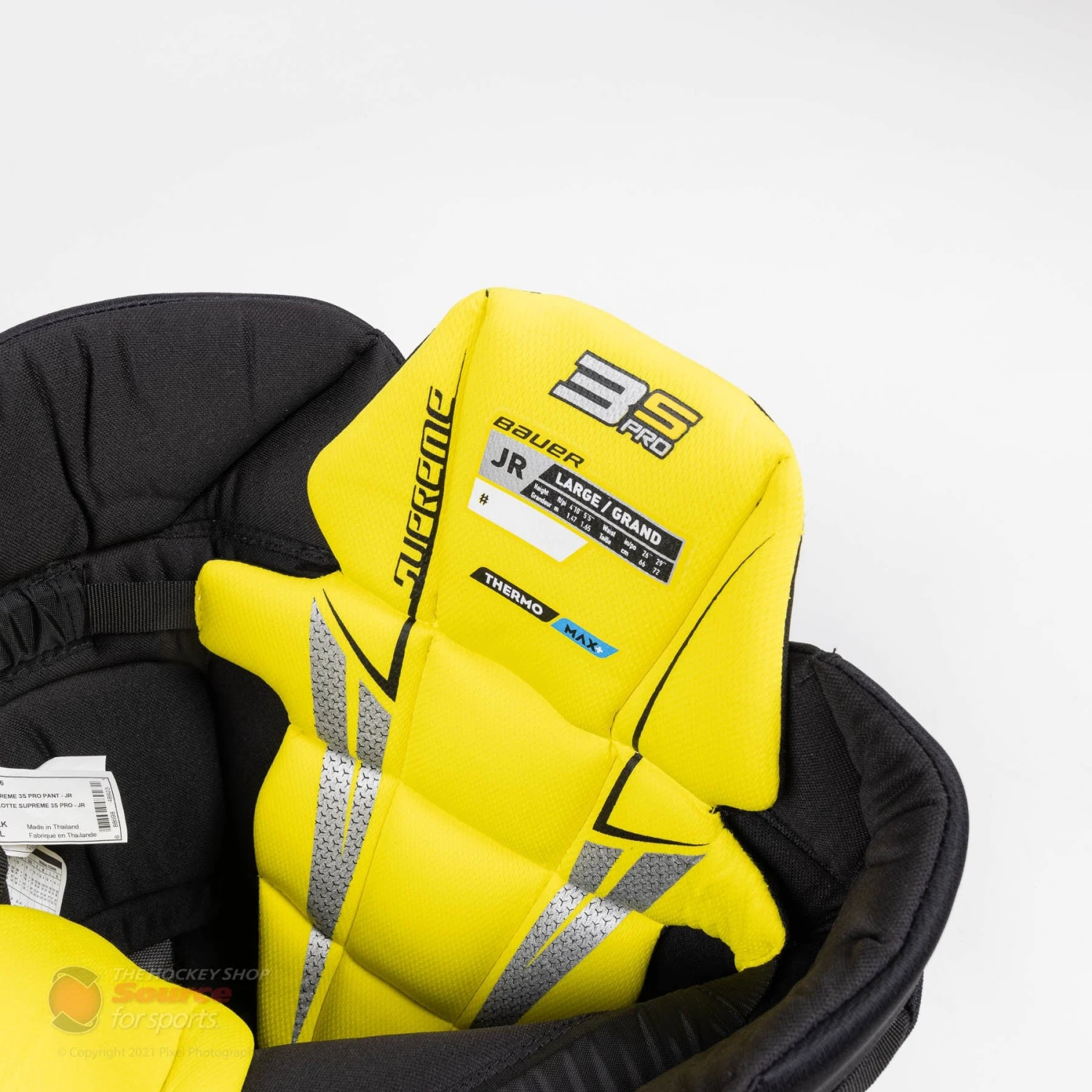 Internally, the Bauer 3S Pros are lined with Bauer’s Thermomax+ liner which excels in managing sweat, moisture, and odor. They also feature an enclosed zipper opening that can be used if the player prefers a looser fit in the thighs. These also make it easier to put the pants on for those that choose to put their skates on before their pants when getting dressed – just don’t forget skate guards!