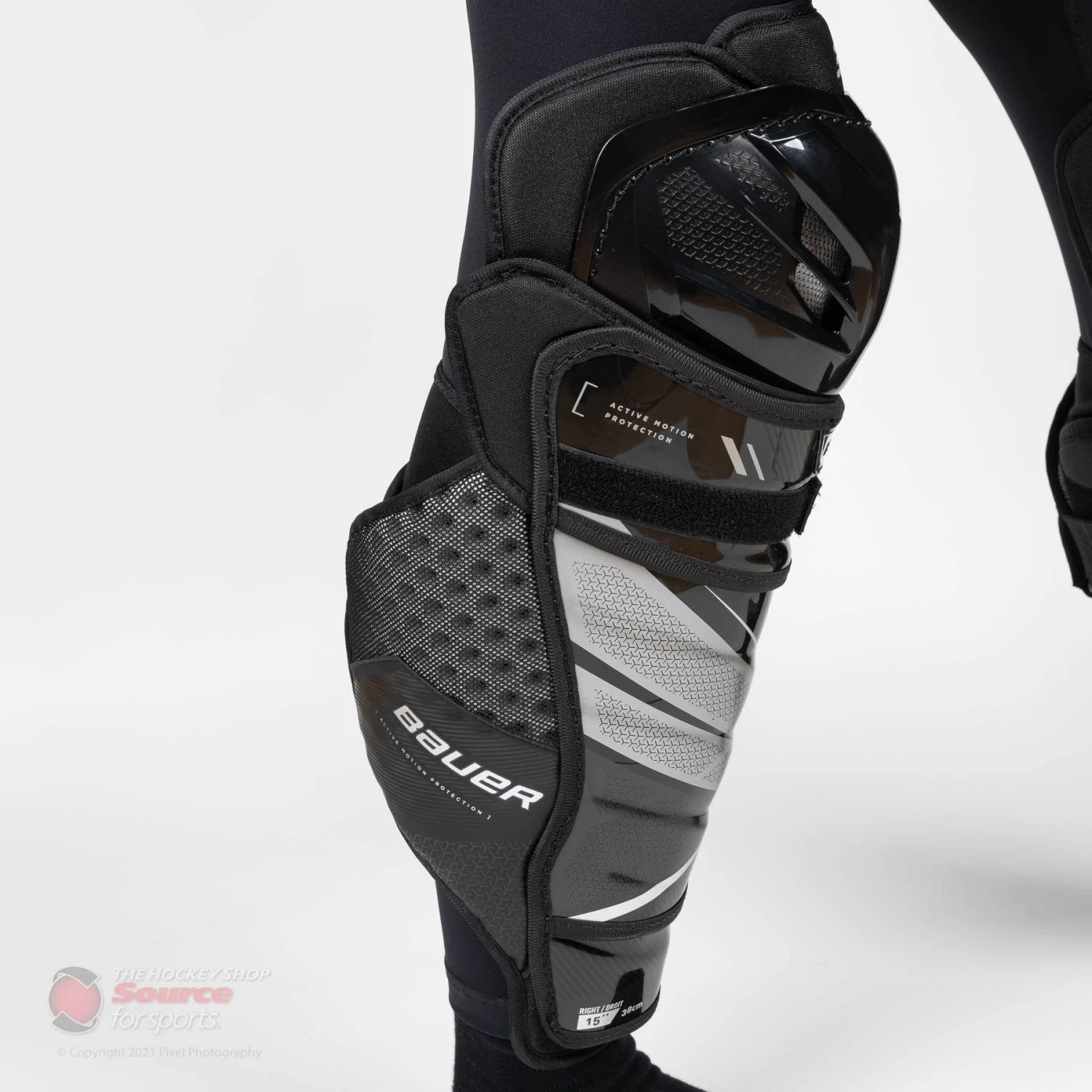The Bauer 3S Pro also offers a flexible high-density foam thigh protector along the top of the knee cap for added protection when bending your knee.