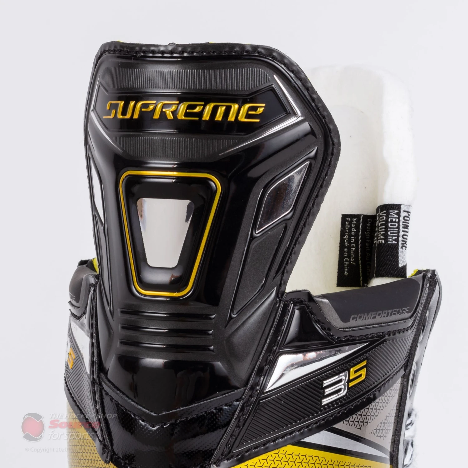 Bauer has constructed the Supreme 3S with the focus on Performance level hockey players. The 3S skate features Bauer’s 3D Lasted Flex Composite material. The Flex Composite Material used in the 3S is used to provide good stability into the skates while offering great ability for ankle flexion. Comfort Edge Padding compliments the top of the boot to reduce bite when performing stops, starts and aggressive tight turns.