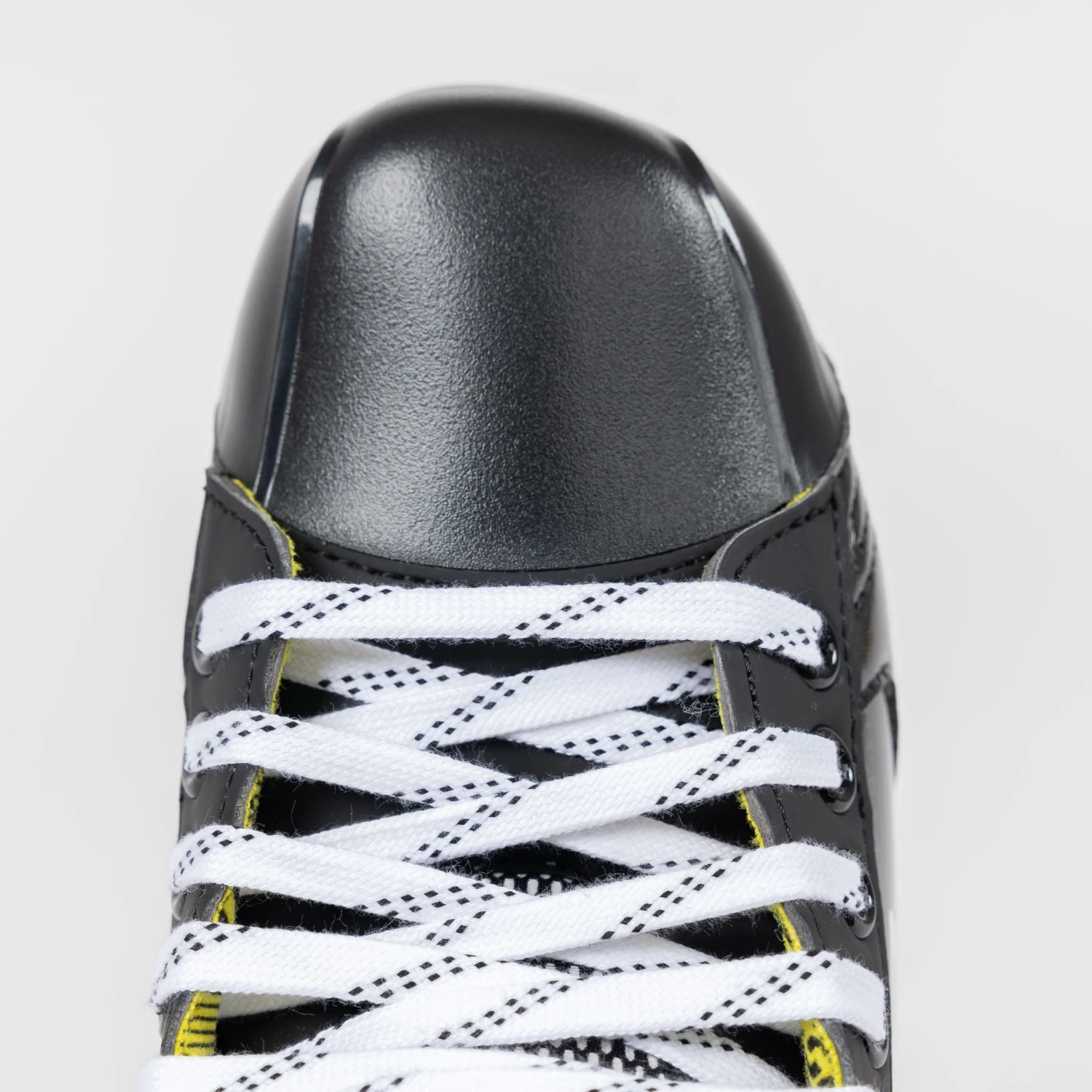 Keeping to the classic theme of the Supreme line, the Elite is mainly coloured black with a bit of shine and yellow graphics and accents. “Elite” and the new Bauer logo are also on display above the ankles and heel.