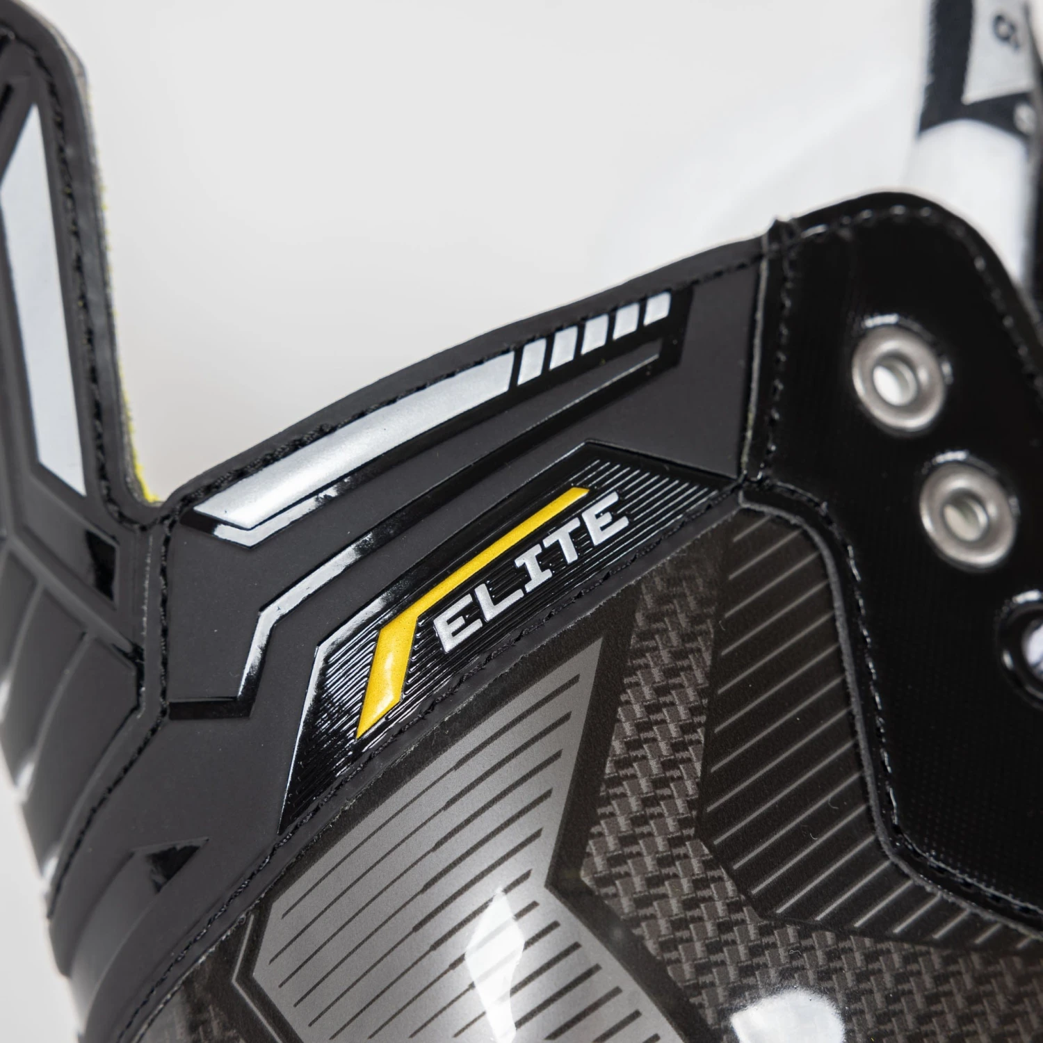 Keeping to the classic theme of the Supreme line, the Elite is mainly coloured black with a bit of shine and yellow graphics and accents. “Elite” and the new Bauer logo are also on display above the ankles and heel.
