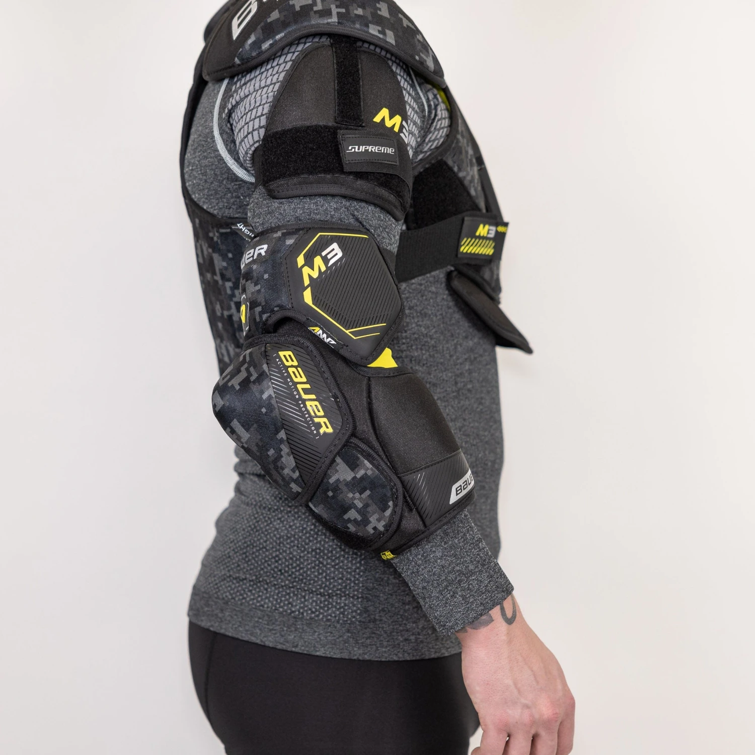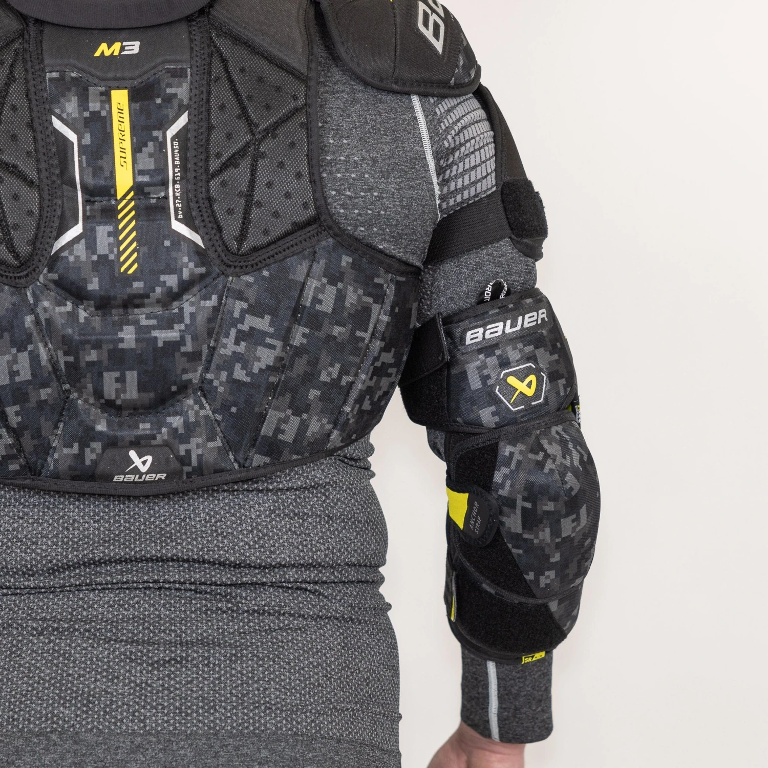 Experience the next level of protection and performance with the new Supreme Mach protective line from Bauer for the 2023 season. The gear is designed to offer great protection against impact in all directions while still allowing for lots of maneuverability. The M3 is competitive-level equipment designed for comfort and safety while keeping to a more affordable price point. Features include a split forearm design, a Thermomax sub liner, and a 2-piece cap construction.