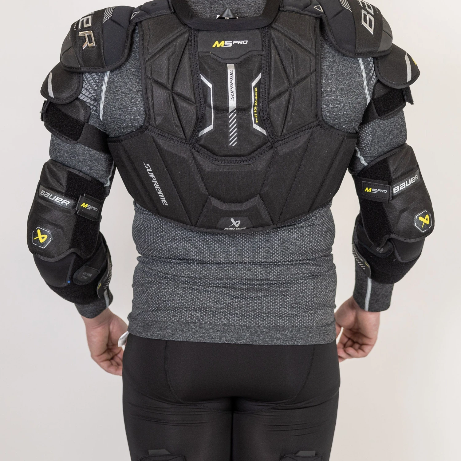 Experience the next level of protection and performance with the new Supreme Mach protective line from Bauer for the 2023 season. The gear is designed to offer unparalleled protection against impact in all directions while still allowing for lots of maneuverability. The M5 Pro features a new EDL elbow cap, CURV composite, and a Thermomax+ liner.