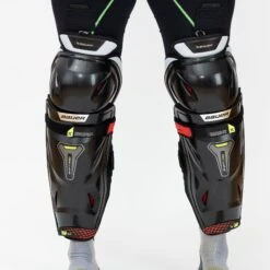For the newest top-of-the-line Supreme skates, Bauer has scrapped the signature gold of the Supreme line for a clean, black look, with some checkered patterns from the weave on the sides. “Mach” is displayed on the outside heels, and Bauer’s new graphic logo can be seen on the back. The switch to a black colouration with some silver accents gives the skates a cleaner, sharper look.