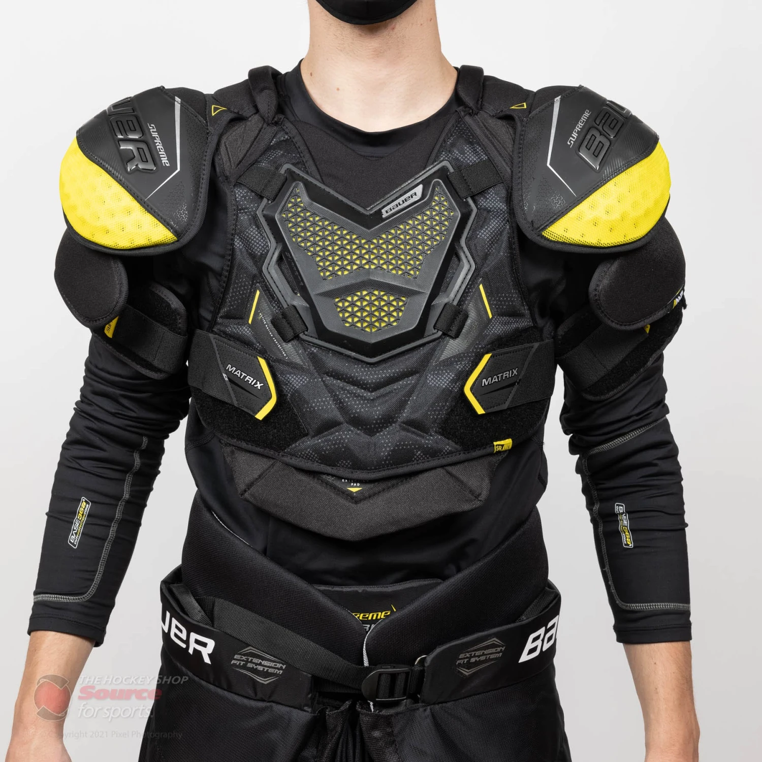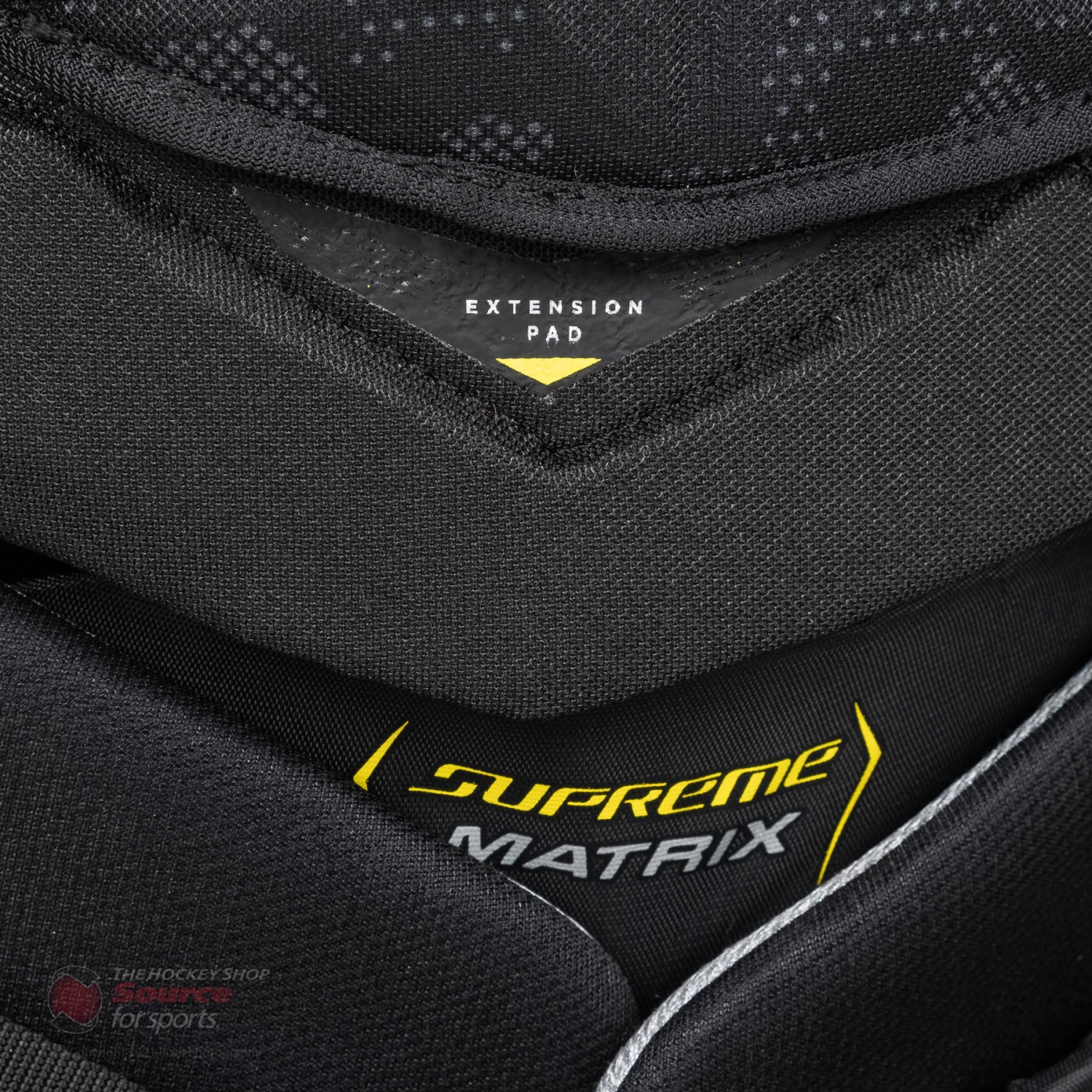 The Source for Sports exclusive Bauer Supreme Matrix Senior Hockey Shoulder Pad comes in the size Medium, Large, and Extra Large. Check out our size guide to find your perfect fit!