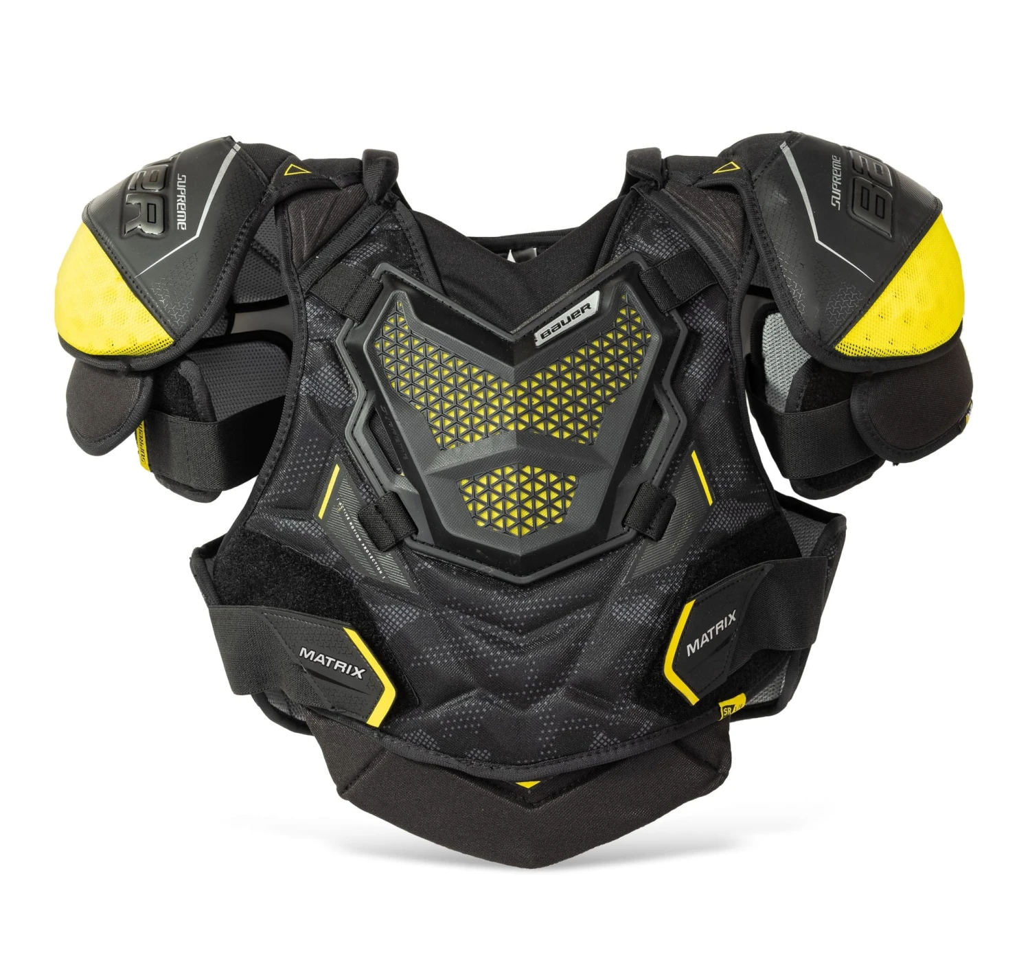 The Bauer Matrix offers low profile molded shoulder caps. They also feature Bauer’s new Active Motion Protection (AMP) technology with Vented Armour Foam that allows the shoulder cap to move with you. The low profile keeps you agile and quick on the ice while still protecting you from high impacts.