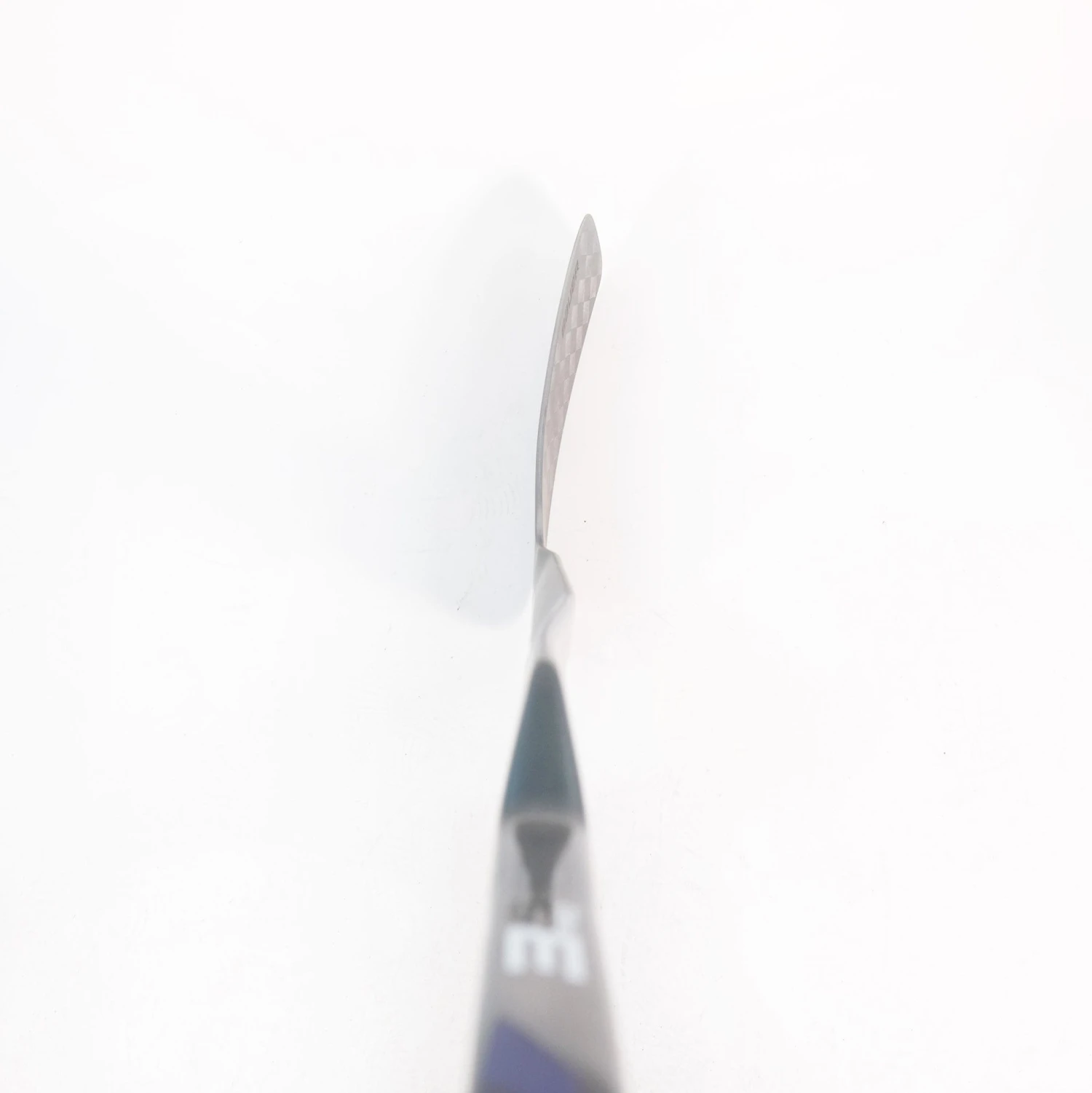 This custom Bauer Supreme 3S Pro goal stick is a pro return from NHL goalie Joonas Korpisalo. It has been outfitted with a Supreme 3S Pro graphic over a Supreme 2S Lite construction. Pro stock goalie sticks possess curves for the goalie they were designed for; the Korpisalo curve is similar to a Bauer P20 curve with a square toe.