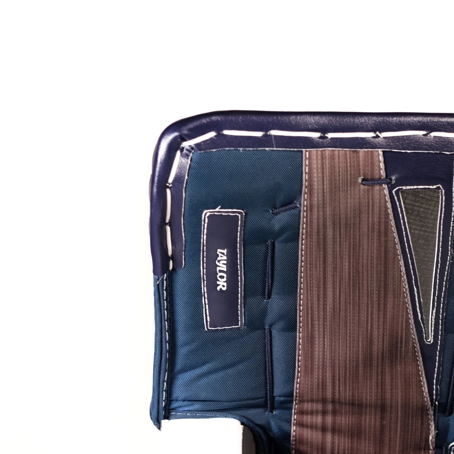 This custom Supreme Ultrasonic leg pad is a pro return from University of New Hampshire goalie Ty Taylor. This is a leg pad tailored specifically for Ty Taylor, with his specific specs and preferences.