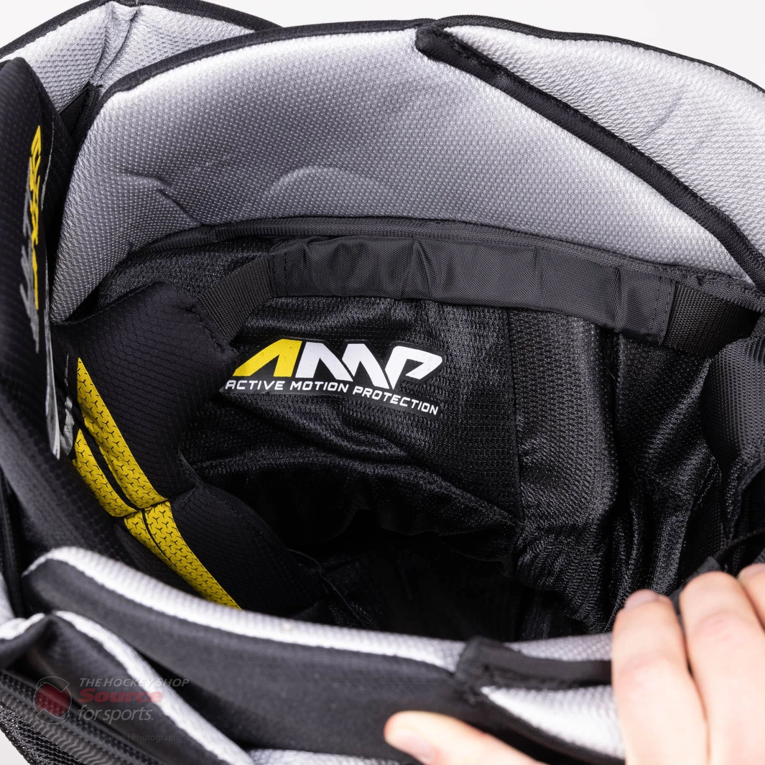 A segmented lightweight foam package in the hips offers great protection in what is usually a high contact area which doesn’t add any unnecessary weight to the pants. The hip also uses Bauer’s AMP (Active Motion Protection) technology which allows the pants to follow your movements.