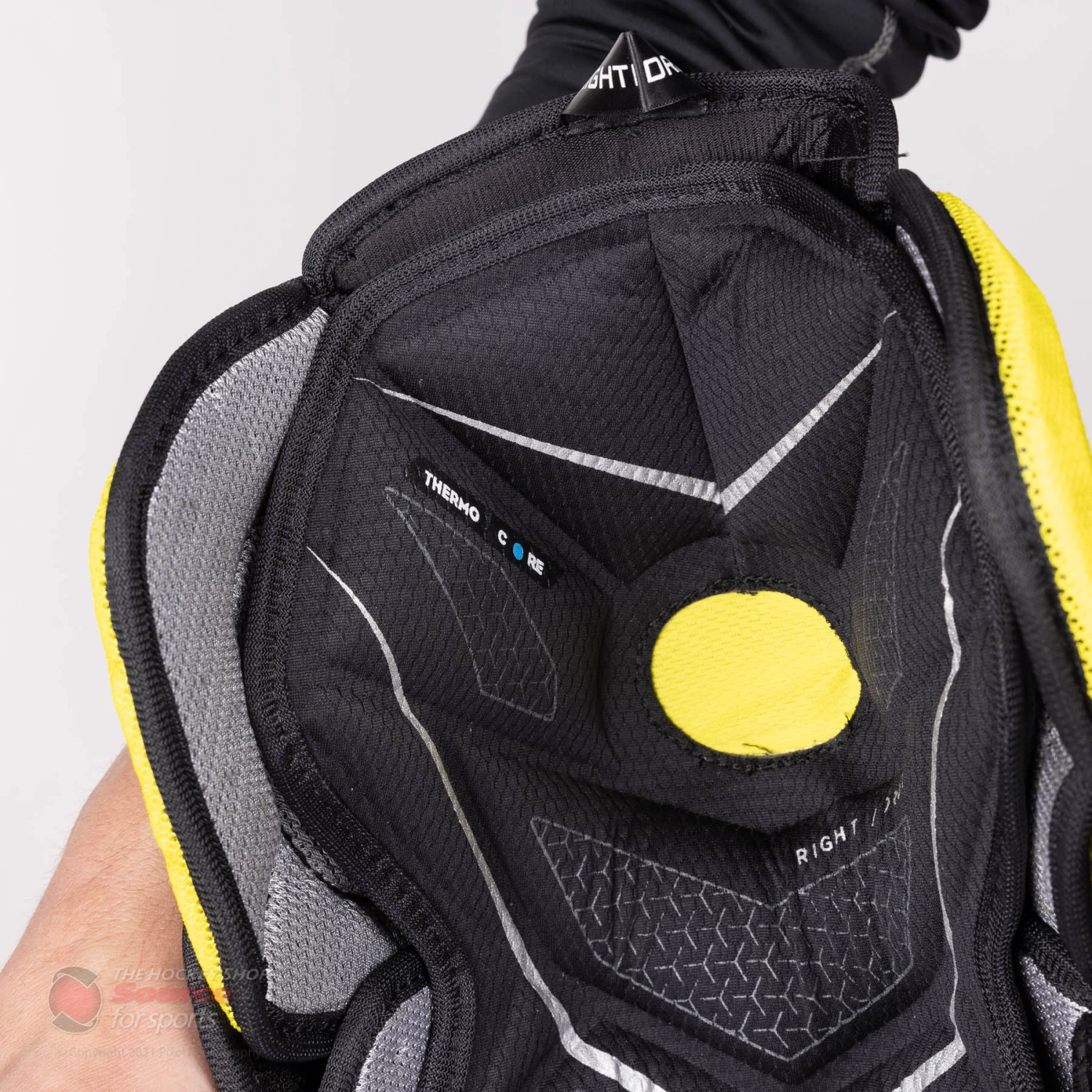 The UltraSonic features Bauer’s ThermoCore liner. This liner is infused with an antimicrobial, anti-odor, and sweat management system. This helps regulate the body’s temperature and will also dry quickly before your next ice time.