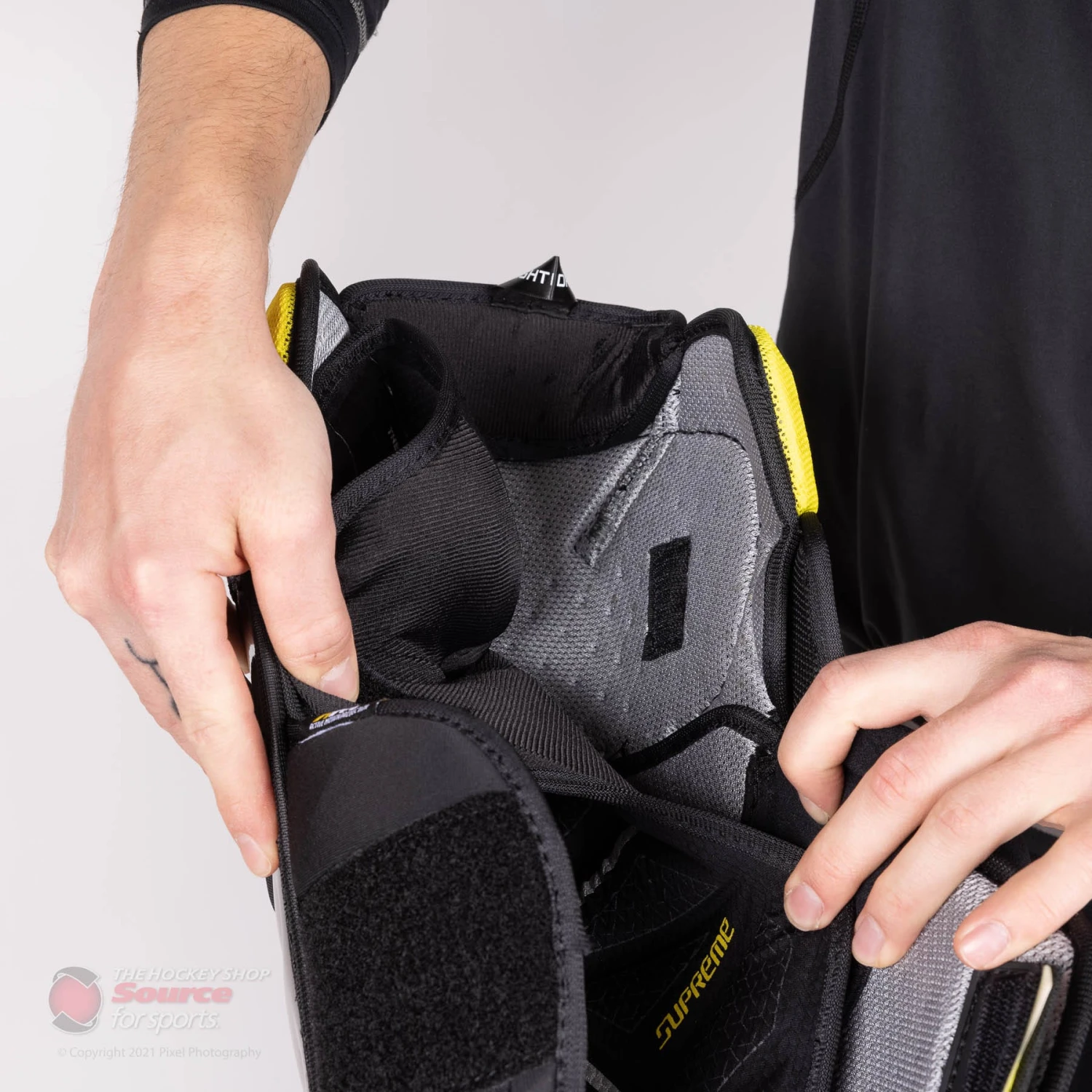 Additionally, the liner has a second layer of protection with Poron XRD ® foam with a flexible skate zone. This zone allows you to comfortably get the shin pad over your skate and flex with your stride. To put the cherry on top, the liner is also removable, and easily washable!