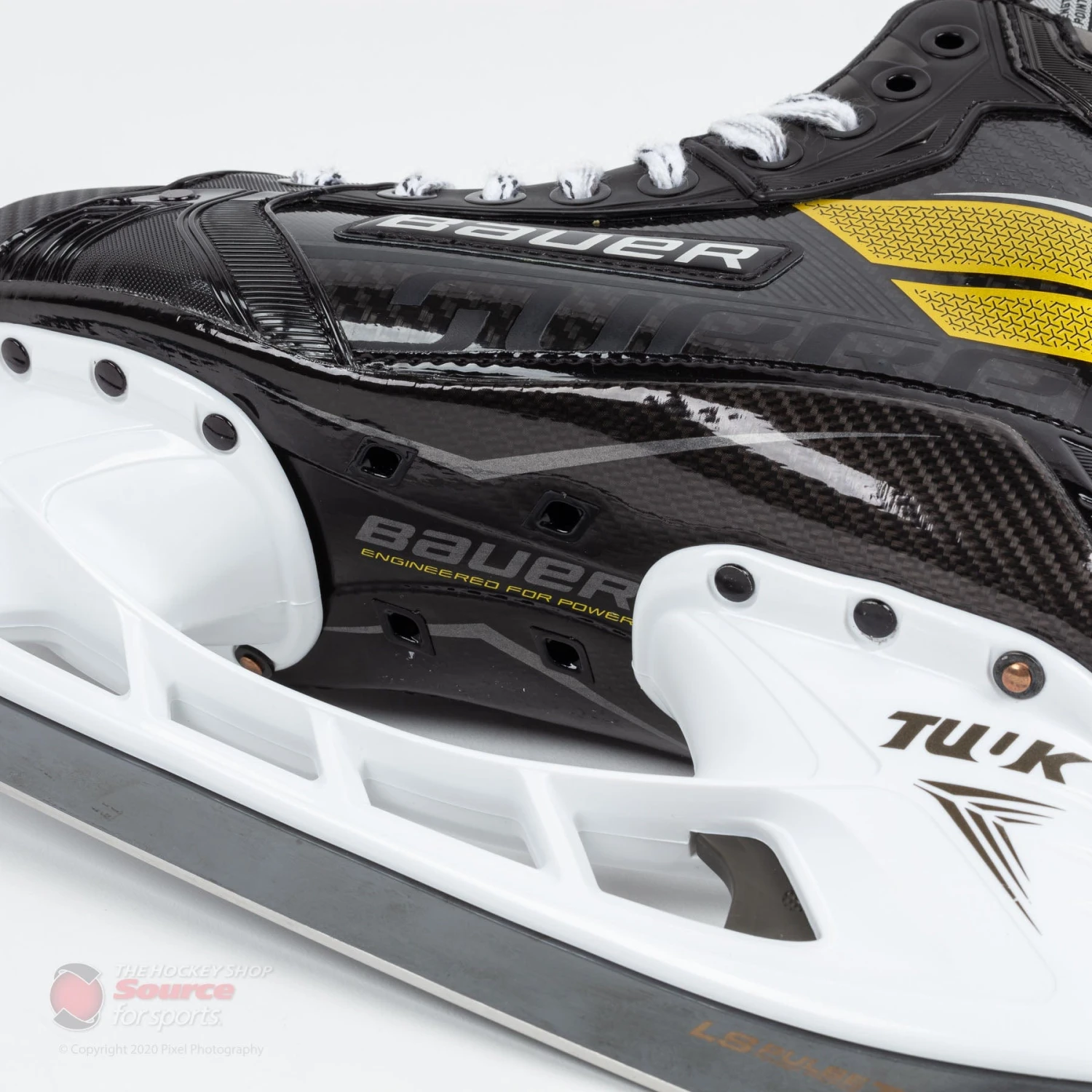 This will be the first season with newly introduced Tuuk Lightspeed Pulse Ti Blade on the Ultrasonic skate. What you will see in this steel compared to the LS5, is a new Titanium coating which delivers premium edge retention, a premium grade steel composition which allows for easier sharpening and increases the lifetime and durability of the blade. One addition to this steel that you did not have the option of doing on the LS5 is honing the steel. Bauer has used a high anti-corrosion finish which is strong enough to withstand a traditional honing stone. This season, you will receive a Power Profile which will only come when you buy the Ultrasonic. Bauer has built a strong working relationship with ProSharp and believes the Power Profile (Quad series) suits the Supreme line very well. You will maximize control, speed and more power from your stride all while being able to do so on a shallower sharpening. Any Pulse Ti steel you purchase aftermarket will be a generic profile for custom profile options done by us!