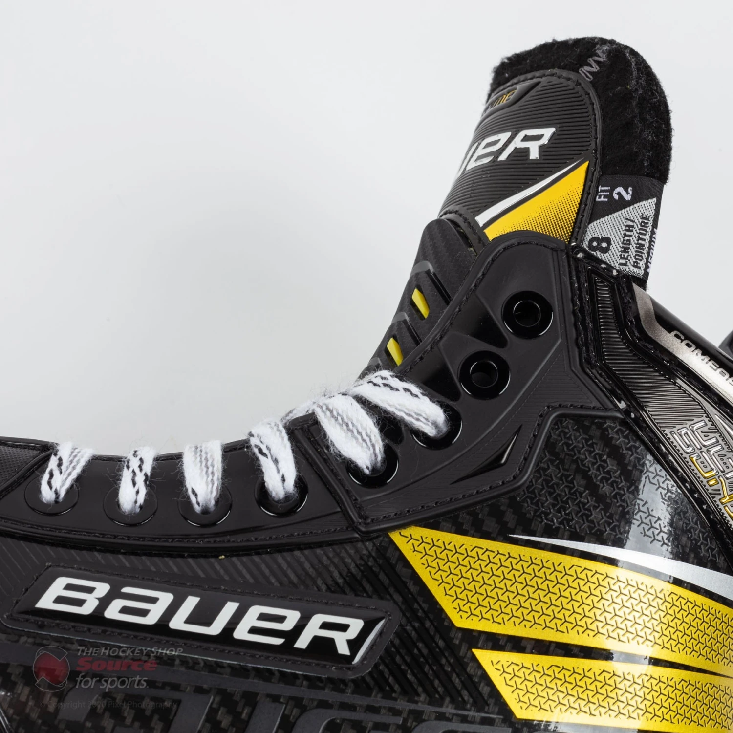 Bauer has introduced a new feature exclusively to the Supreme line, with the flex of each skate geared towards matching the flex of the boot to the player’s skating abilities. On the UltraSonic Senior hockey skate, the flex profile is stated to be 90 flex points, where its smaller sizes in the intermediate range are stated to be 85 flex points. With this flex profile integrated into the Ultrasonic boot, this will provide increased range of motion, heightened lateral and torsional stiffness which translate to the highest form of energy transfer.