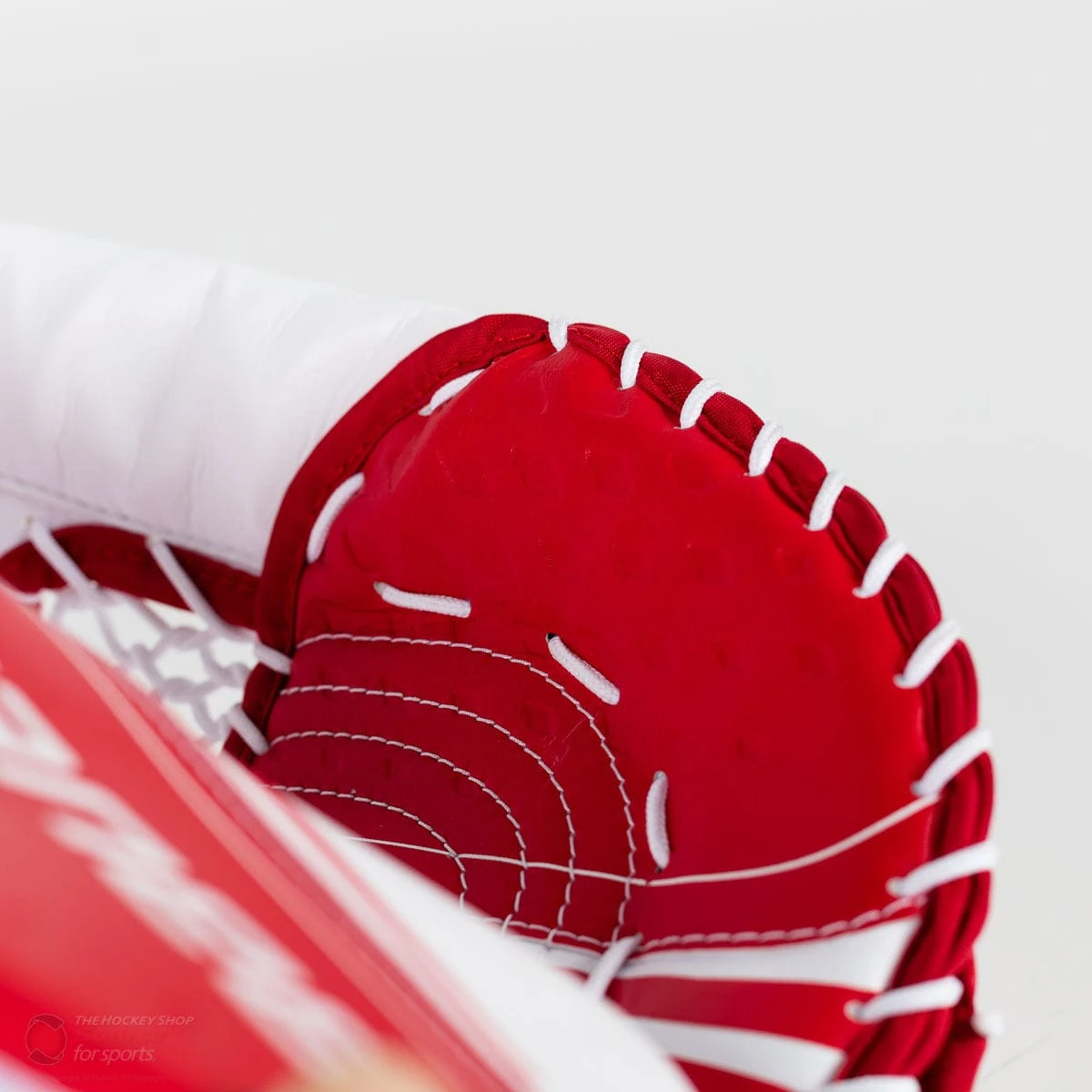 The new Bauer 2X Catcher has gone back to the single T design, different from the split T on the 1X and the double T on the 2S promoting the glove to close faster and easier. Bauer has also created a new max depth pocket to allow the glove to trap and keep any pucks sent its way with ease.