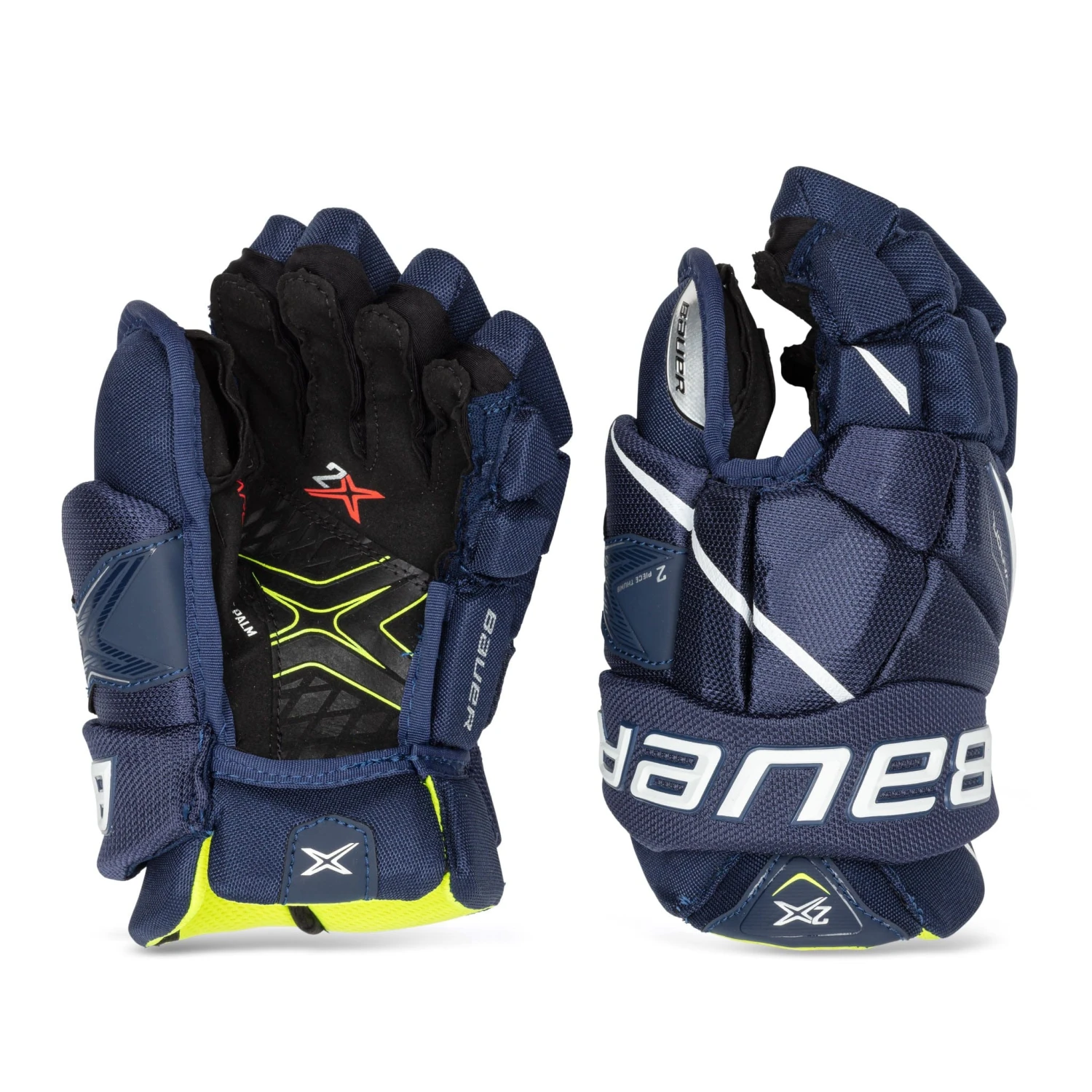 The Bauer Vapor 2X Junior Hockey Gloves come in sizes 10”, 11” and 12” and are available in black/white, black/black, navy/white, navy/red/white, and red/white.