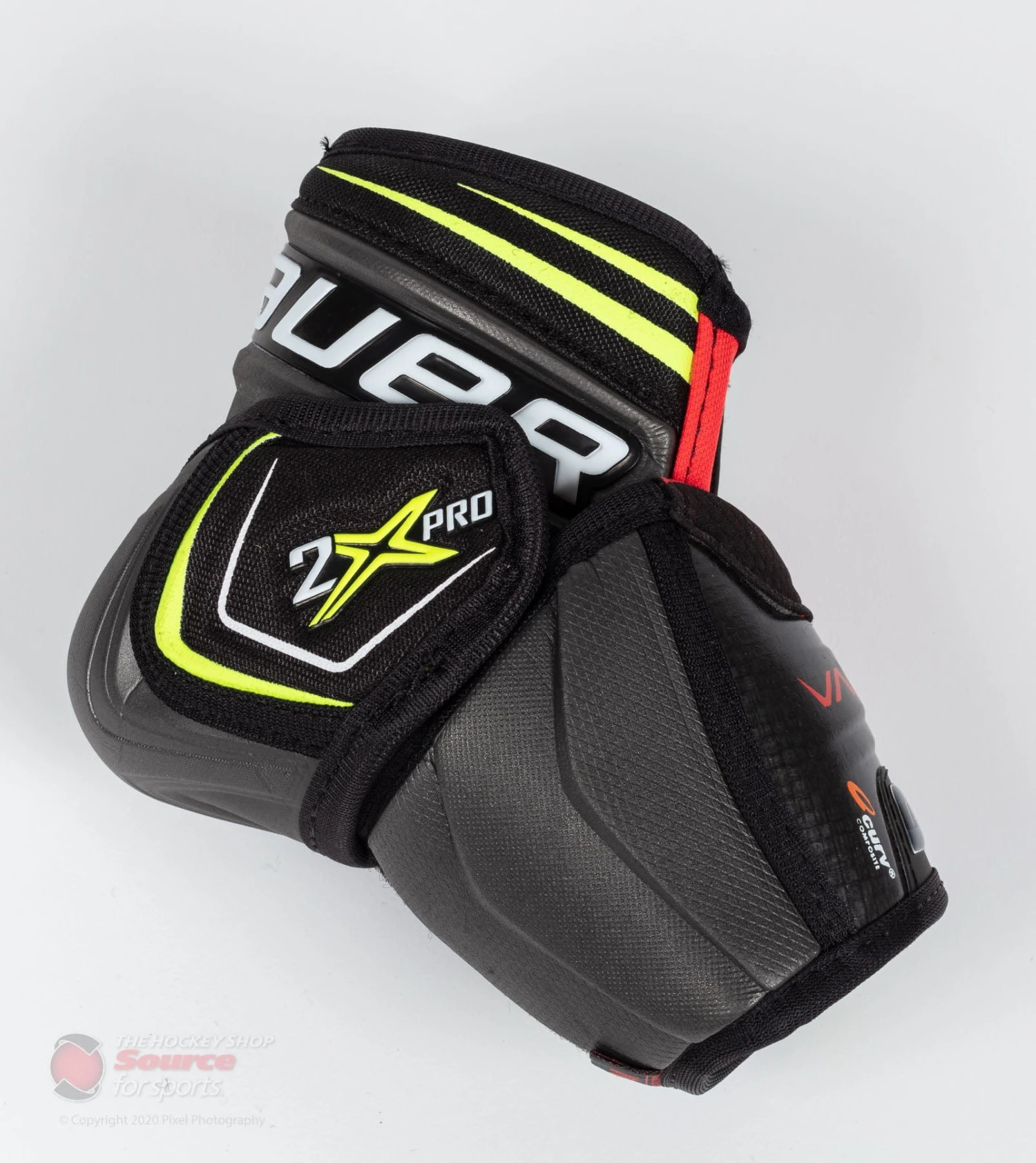 The 2X Pro elbow pads have Bauer’s new anatomically molded 3-piece cap with molded HYPERLITE foam cap covers. These increase mobility while locking your elbow in place ensuring that you will feel confident you’re fully protected from impacts.