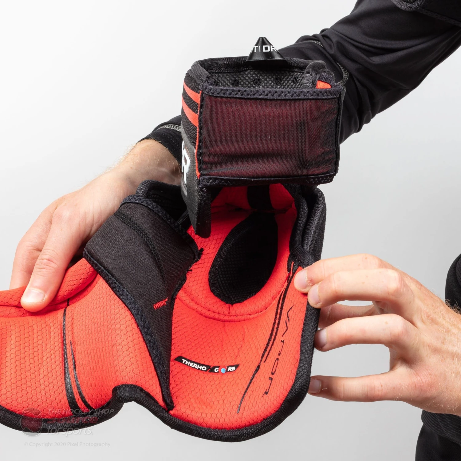 The three piece construction allows for full arm mobility, and ensures all key areas are fully protected with Bauer’s HYPERLITE HD Foam.