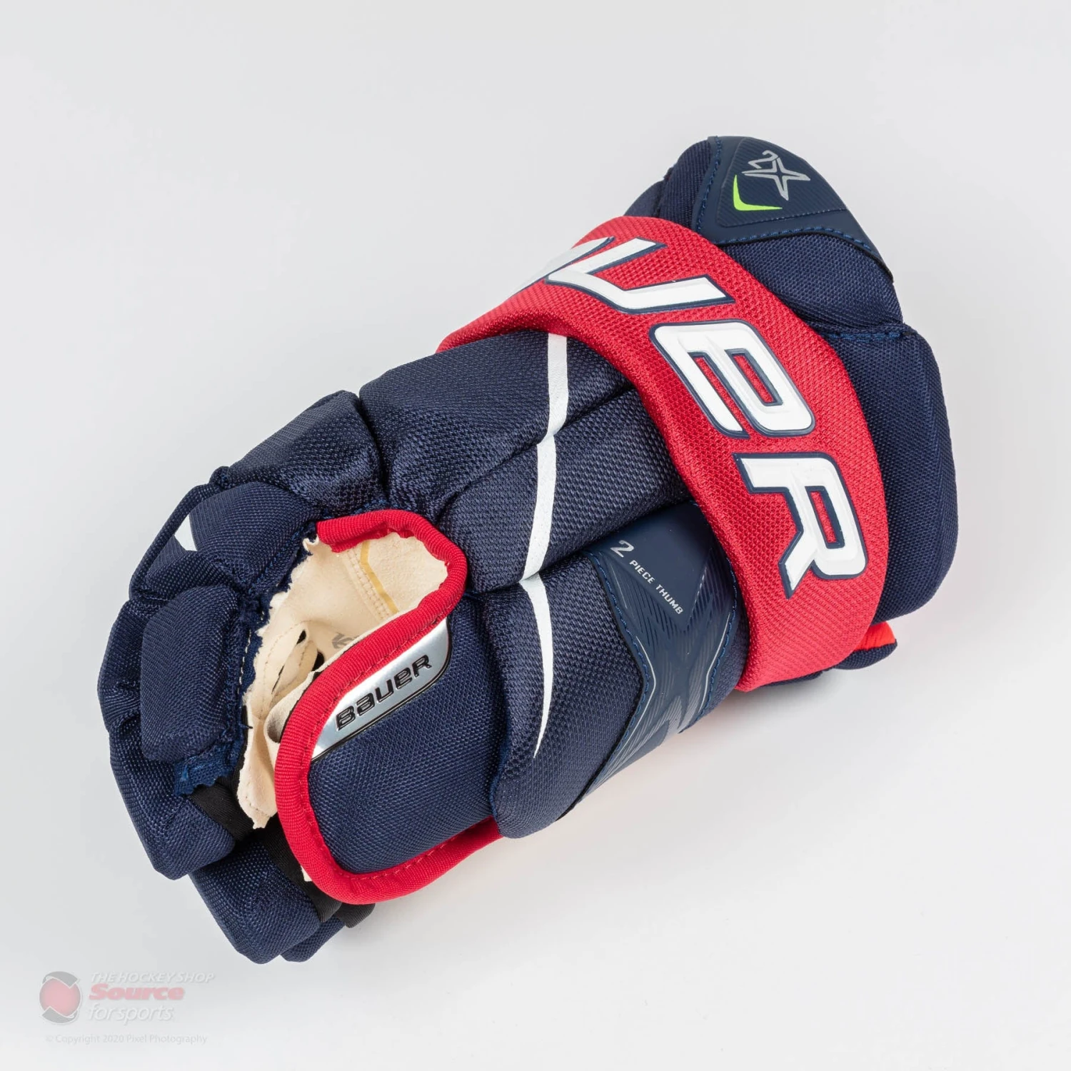The Bauer Vapor 2X SR Hockey Glove fits snug through the hand and opens up at the cuff creating a very comfortable stick feel. You will feel confident your hands are fully protected while snapping the puck around in these lightweight gloves.