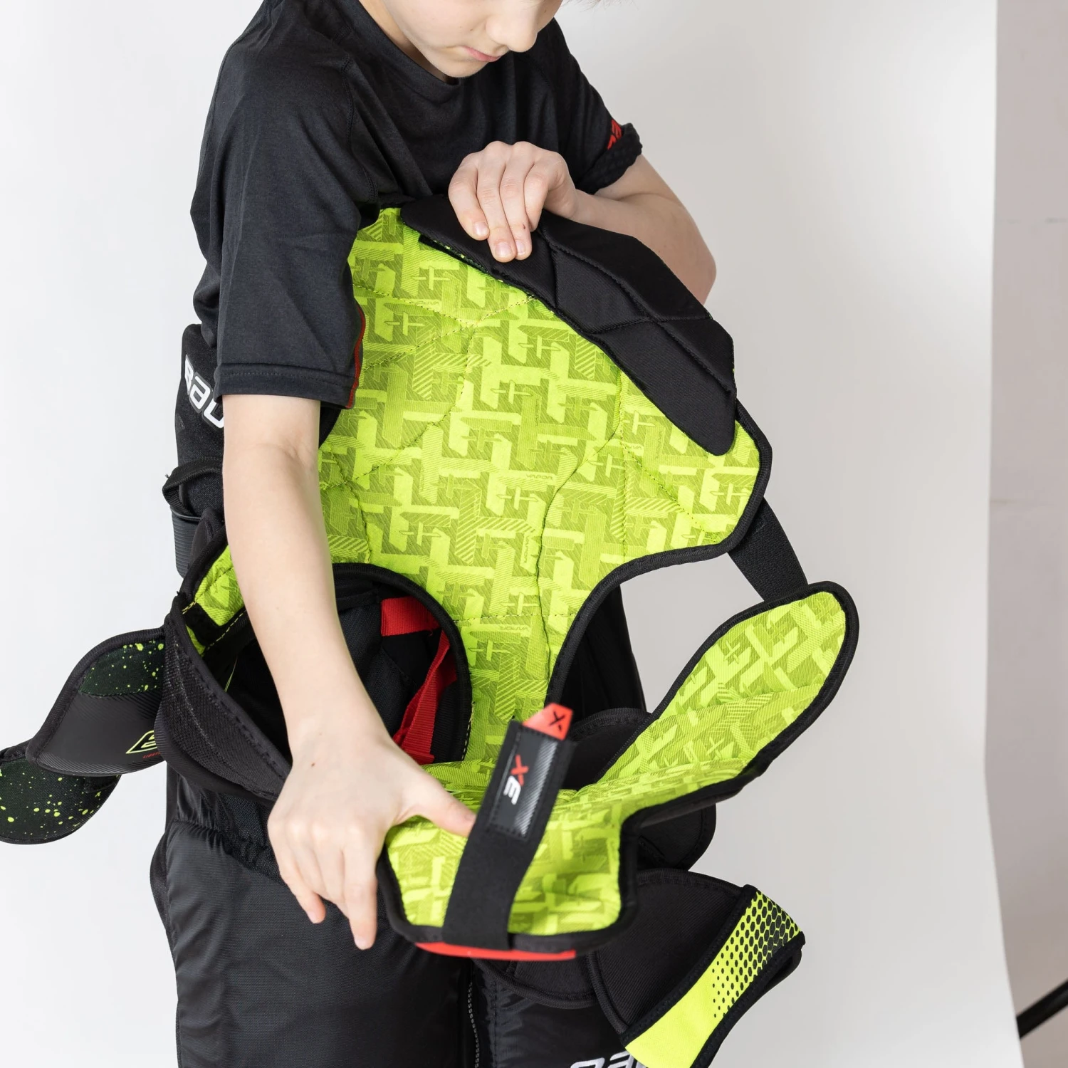 Bauer’s next upgrade to the Vapor protective family at the competitive and recreational levels is in the form of the new 3X protective series. The 3X shoulder pads are designed with reliable foams and inserts seen previously in Bauer gear, as well as a new Flexaprene vest and a Thermomax sub liner to give you amazing protection at whatever level of the game you play at.