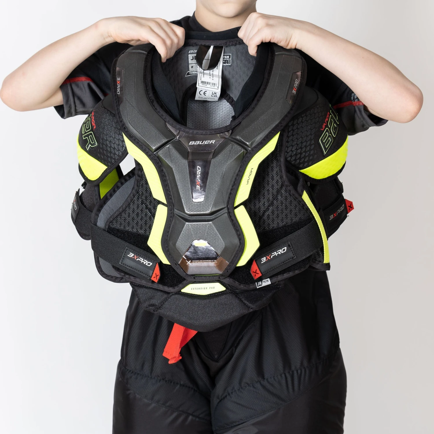 The Bauer Vapor 3X Pro Junior Hockey Shoulder Pads are available in Small and Medium sizes. If you are looking for a larger size, the 3X Pro gear is also available in Senior sizing.