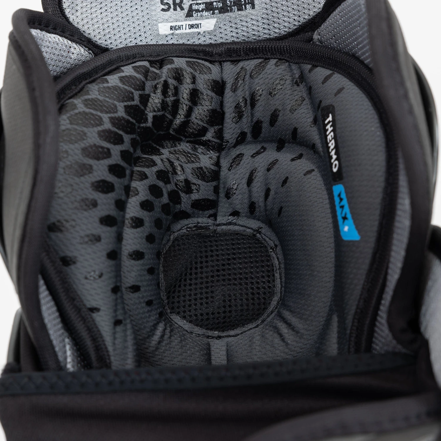 Bauer uses a molded comfort liner treated with Thermomax+ in the 3X Pro shin guard. Thermomax+ is designed to repel odour and allow for enhanced airflow, keeping you cool and fresh while you play. If you need more space in the knee area, the liner is also removable.
