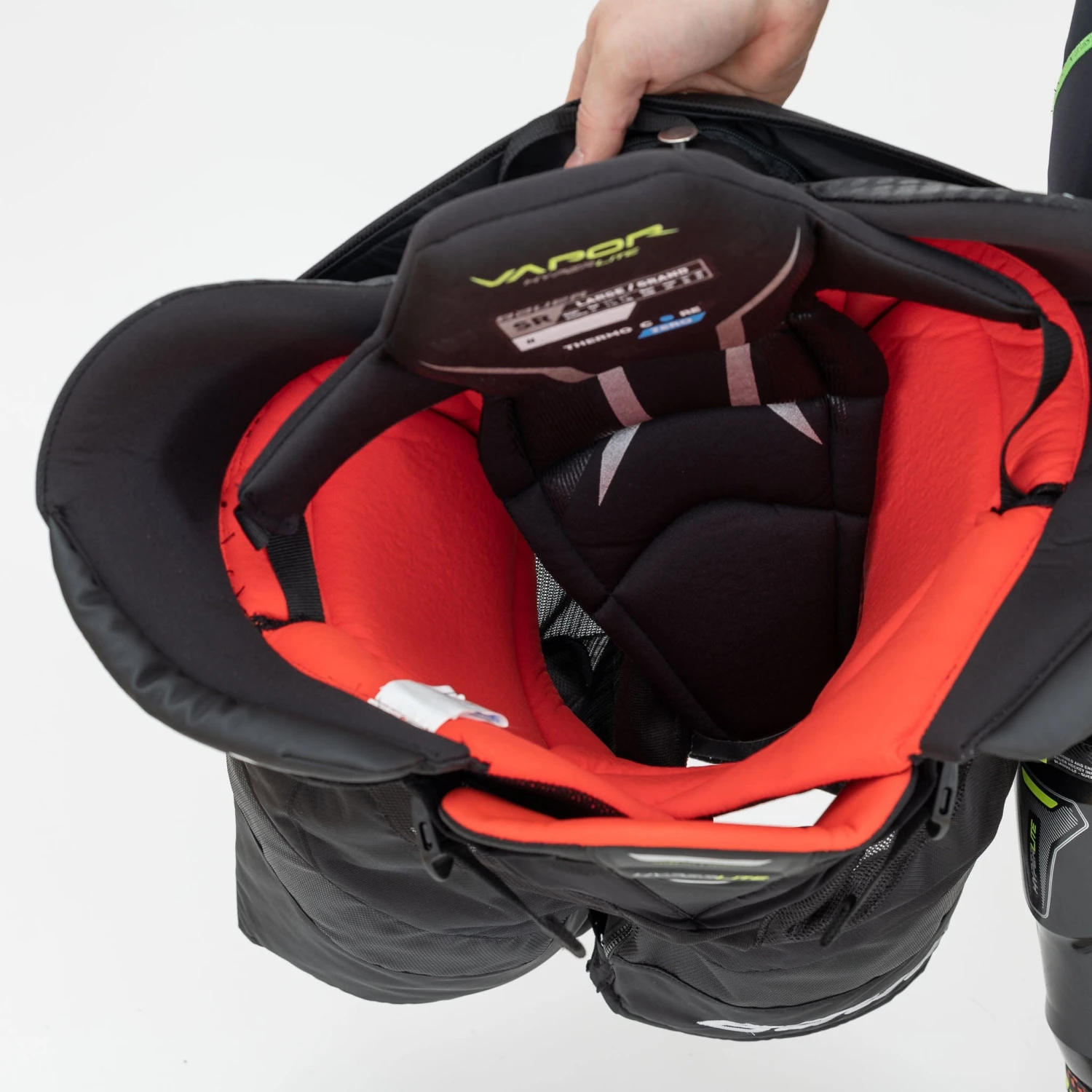 For adjustment, Bauer has added a zippered extension feature, which allows the player to add an additional 1” to the overall length of the Hyperlite. The feature is particularly useful for players who are experiencing a growth spurt mid-season or who are in between sizes.