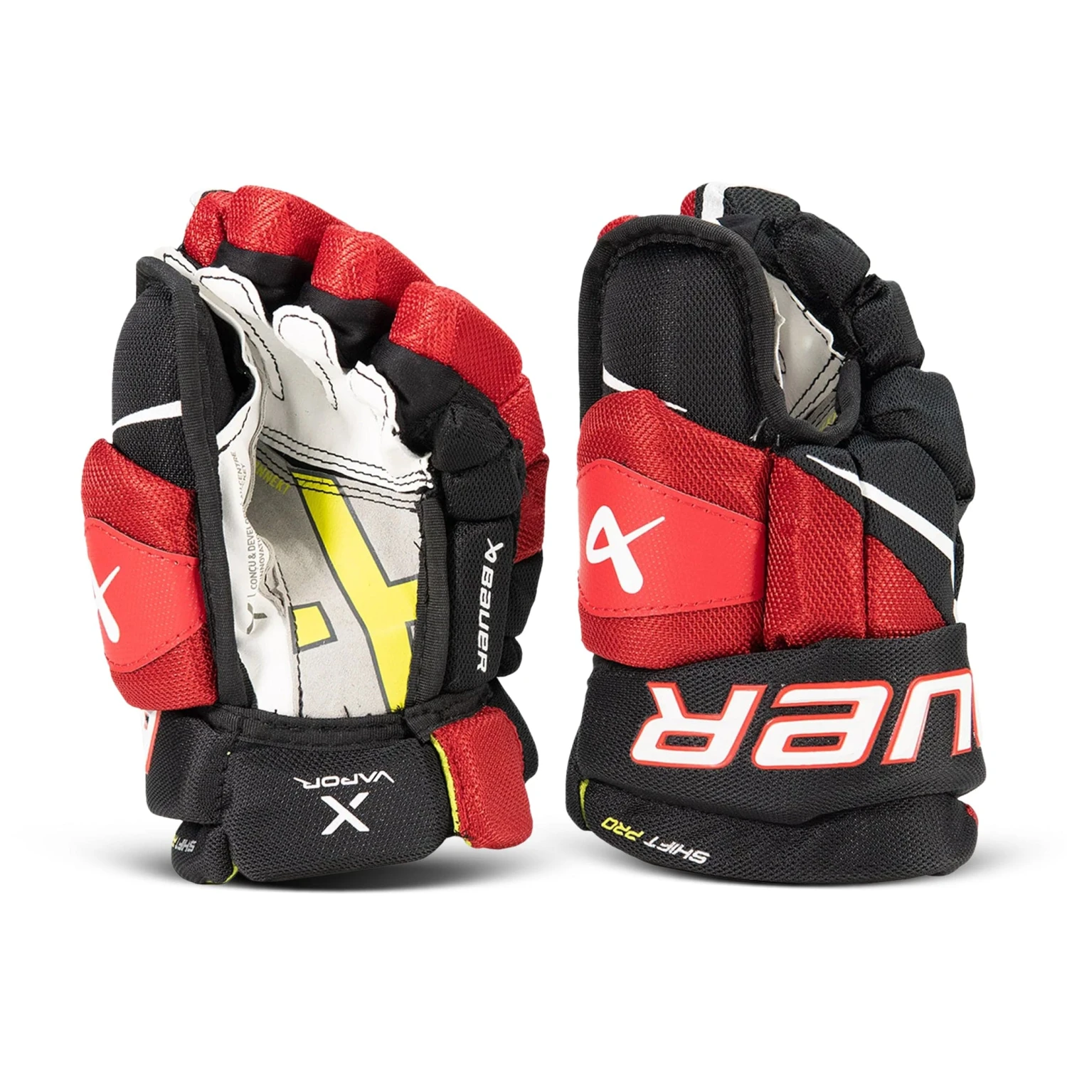 The Bauer Vapor Shift Pro Junior Hockey Gloves come in 10” and 11” sizes in the following colourways: Black/Red, Black/White, and Navy.