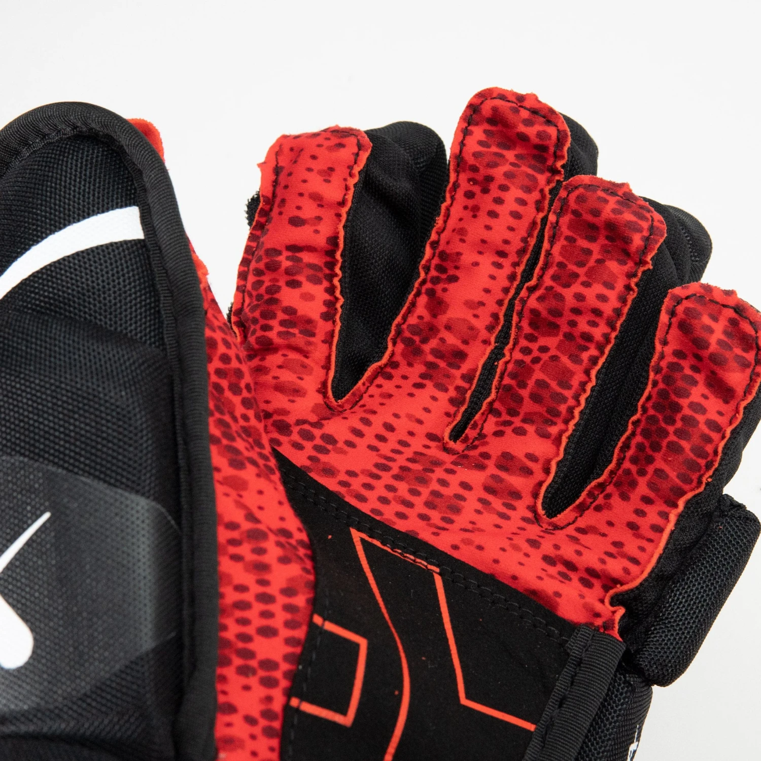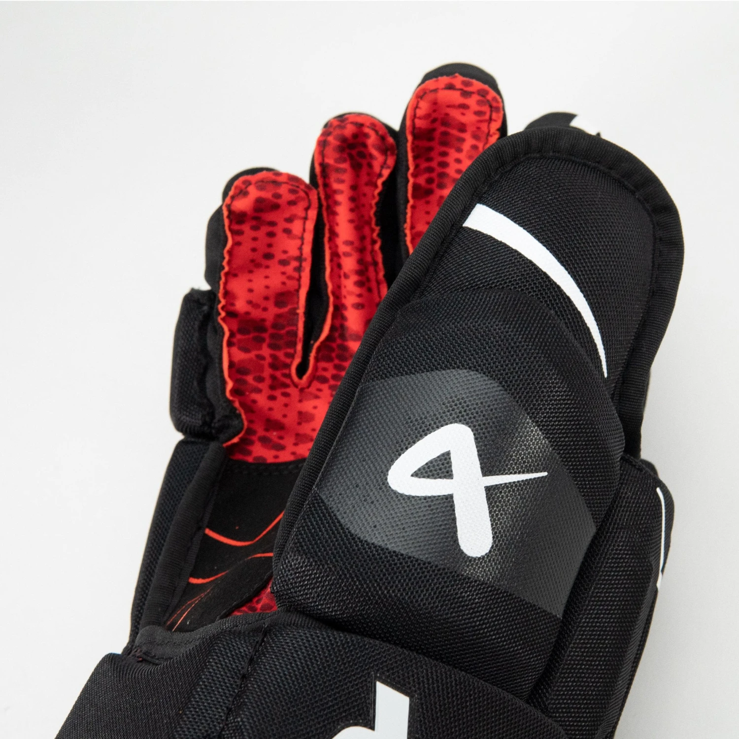 The gloves are equipped with dual-density foam for protection and use a three-piece index finger design. The three-piece design helps enhance flexibility in that finger, allowing for more overall freedom when stickhandling.