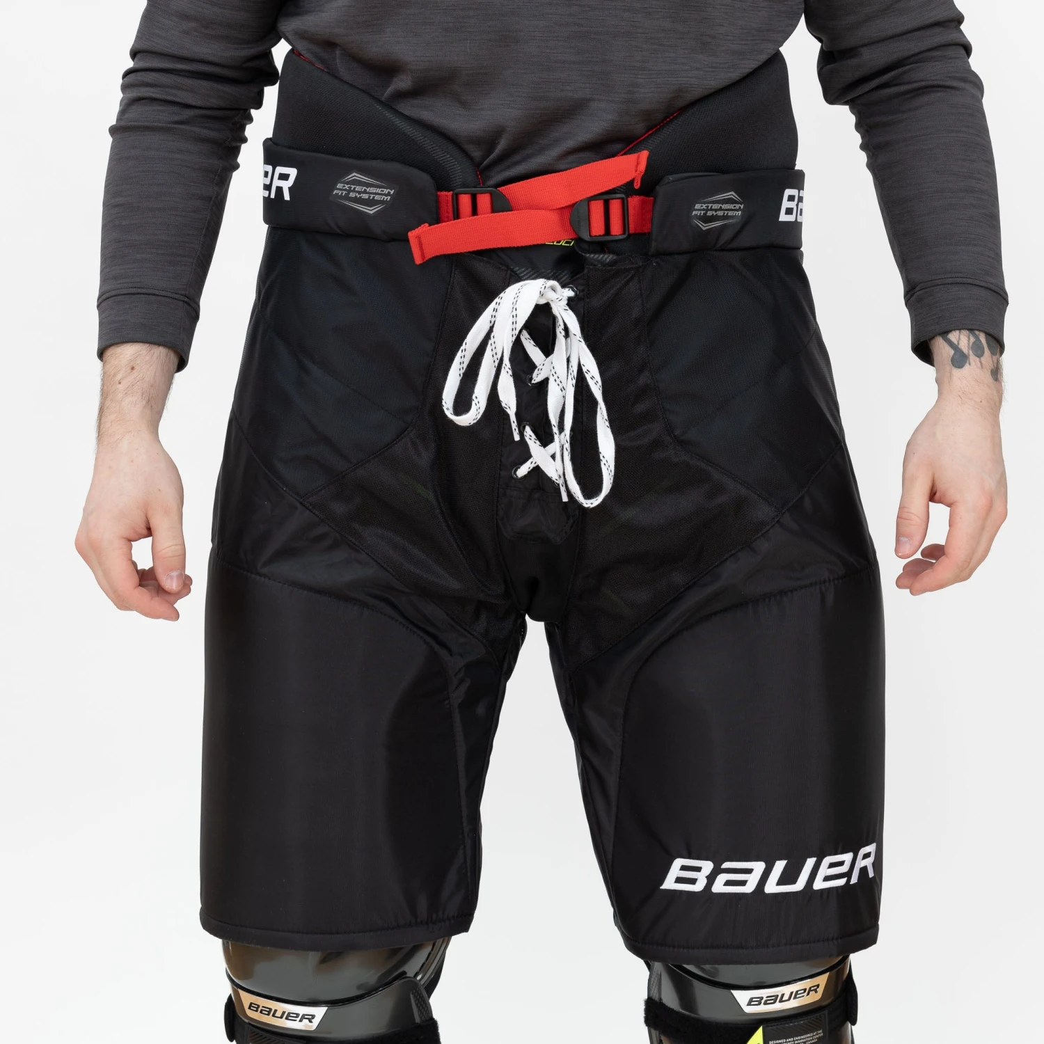 The hips have a tapered fit coupled with a molded PE shield insert for good coverage against impact force. As the agility line of Bauer’s hockey equipment, the pants need to allow you to be as aerodynamic as possible while you skate, which is where the tapered fit comes in—it’s a bit tighter at the top and slightly wider at the bottom for less wind resistance while you skate.