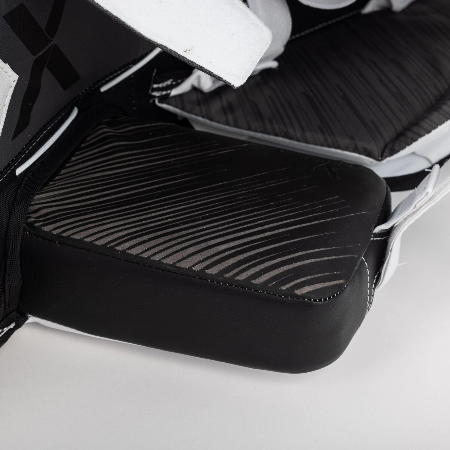 The pads use Bauer’s Cortech calf plate. which is designed to provide a greater level of protection and support to the goaltender’s lower leg and calf muscles, reducing the risk of injury and improving overall comfort when in motion on the ice. The Cortech calf plate is constructed using a series of layered materials, including high-density foam and composite inserts. These materials are strategically placed in the calf area of the pad to provide a high level of impact protection and support.